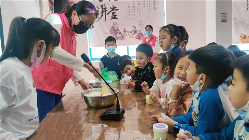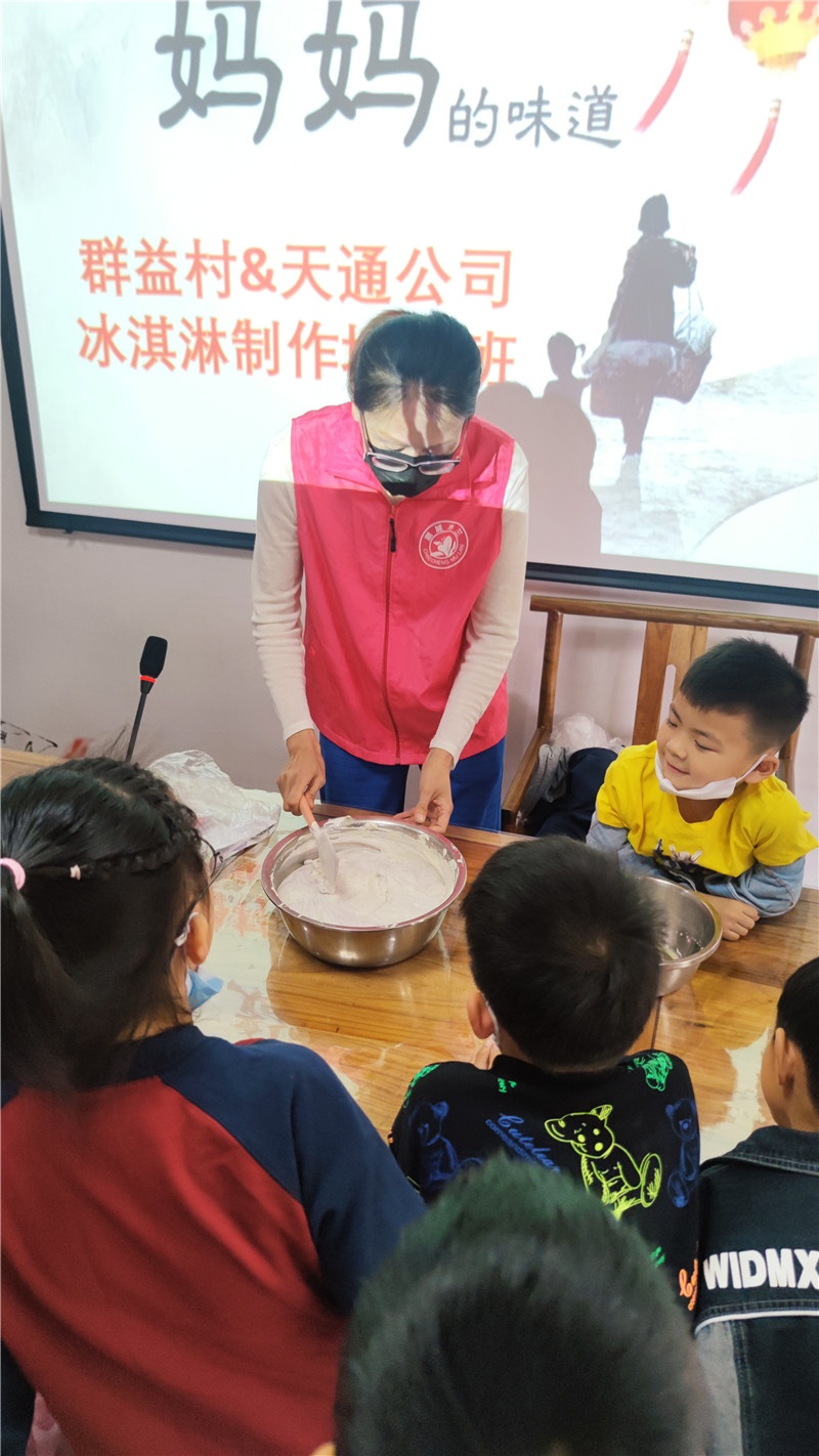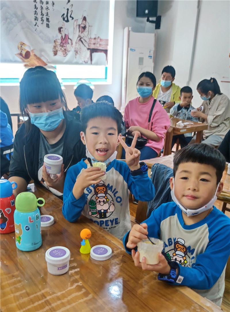 提及冰淇淋,現(xiàn)場的小朋友一個個興奮得歡呼雀躍。商場里出售的冰淇淋中多含有較多的添加劑,如何給孩子制作一款無添加劑的冰淇淋成了這堂親子互動課的目的。群益村美食老師現(xiàn)場講解打發(fā)雞蛋及雞蛋牛奶混合液的過程,演示打發(fā)淡奶油、攪拌混合,加入果醬等改變口味的方法和分裝小瓶等步驟。期間大家認(rèn)真聽講解,小朋友們眼睛牢牢地盯著講臺,仔細(xì)觀察每一個步驟,還時不時地向美食老師發(fā)問,興致高漲。孩子們一邊品嘗著冰淇淋,一邊在自己的冰淇淋罐盒上貼上自己所愛口味的標(biāo)簽后讓美食老師裝滿剛做的冰淇淋,跑前跑后忙得不亦樂乎!